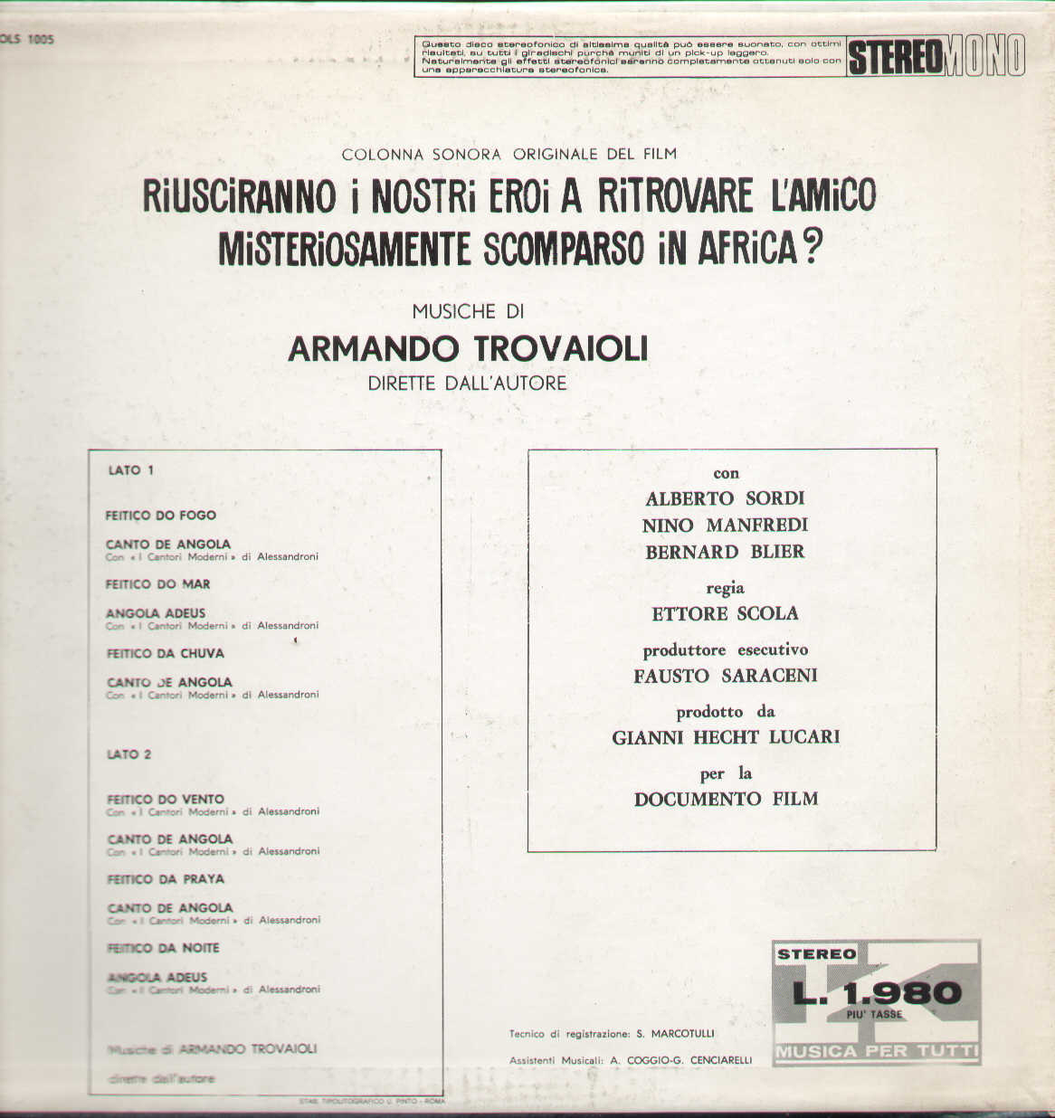 Armando Trovajoli - Riusciranno I Nostri Eroi A Ritrovare L'amico Misteriosament