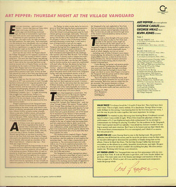 Art Pepper - Thursday Night At The Village Vanguard