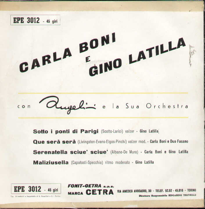 Carla Boni Gino Latilla - Sotto I Ponti Di Parigi / Que Sera Sera / Serenatella ..