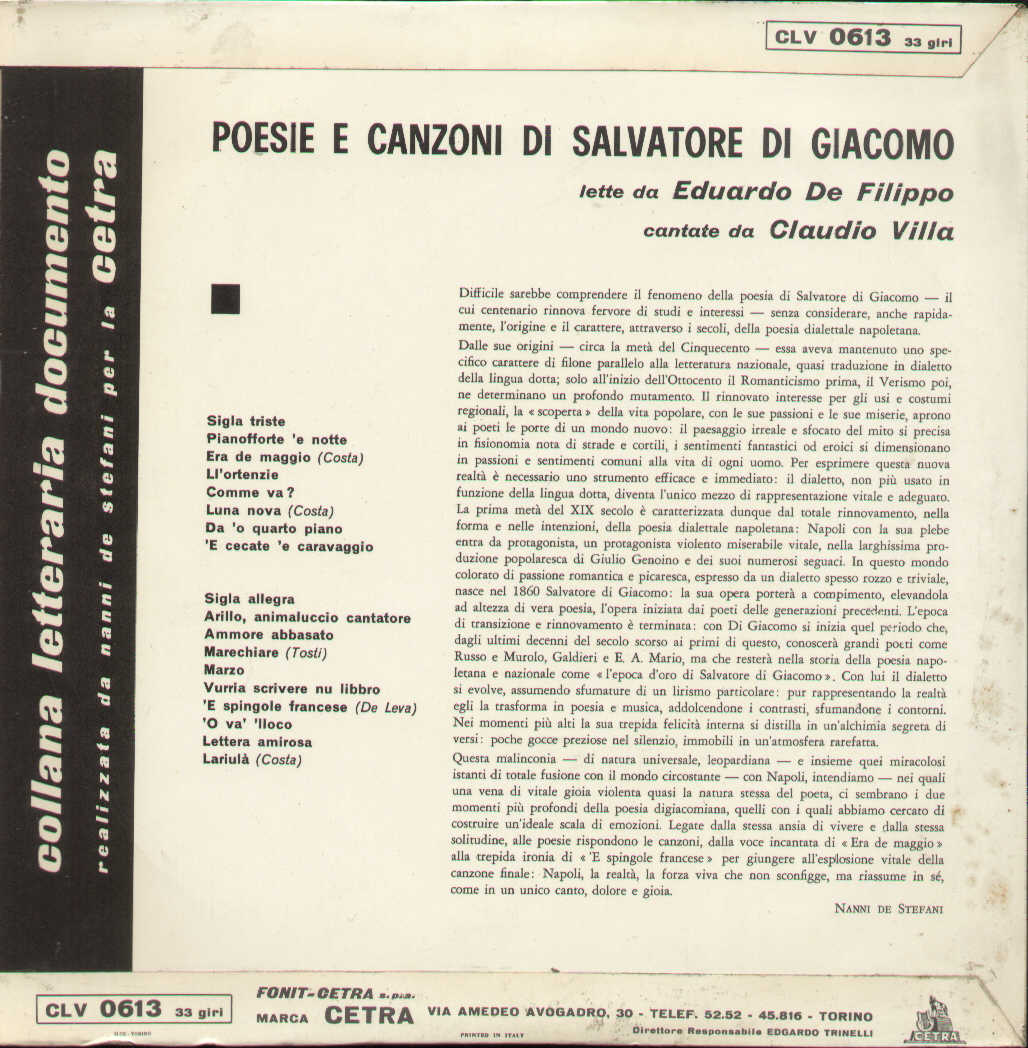 Claudio Villa Edoardo De Filippo - Poesie E Canzoni Di Salvatore Di Giacomo