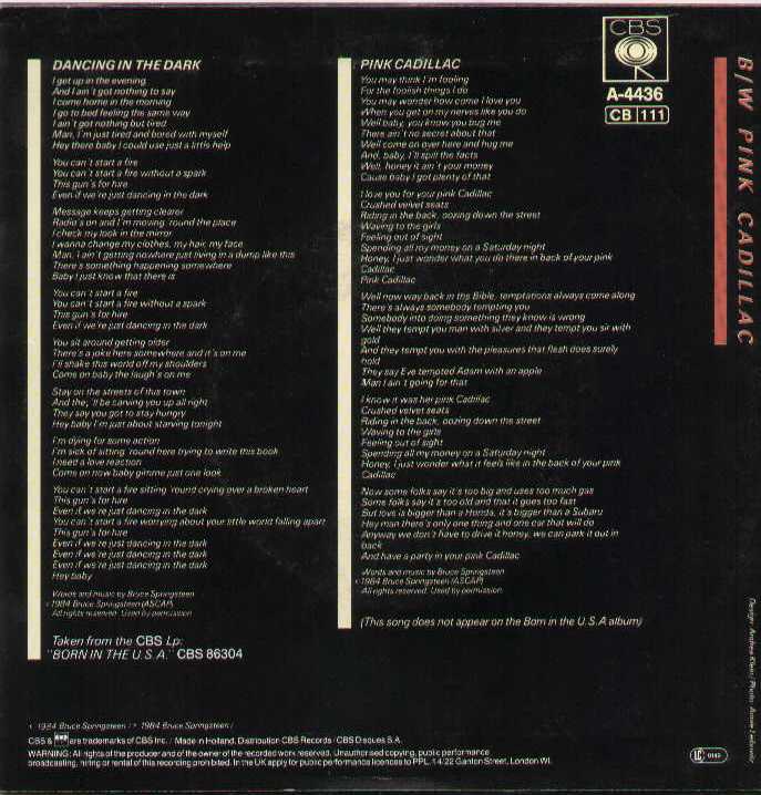Bruce Springsteen - Dancing In The Dark / Pink Cadillac