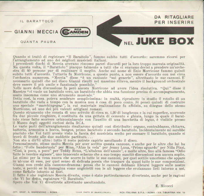 Gianni Meccia - Il Barattolo / Quanta Paura