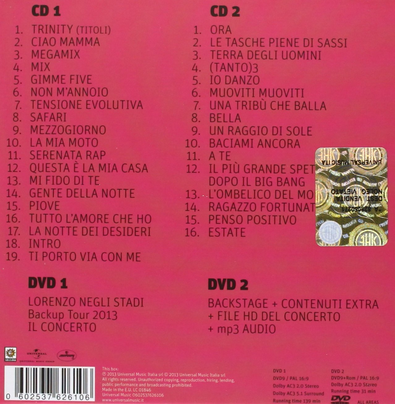 Jovantotti - Lorenzo Negli Stadi Backup Tour 2013 2Cd + 2Dvd Live