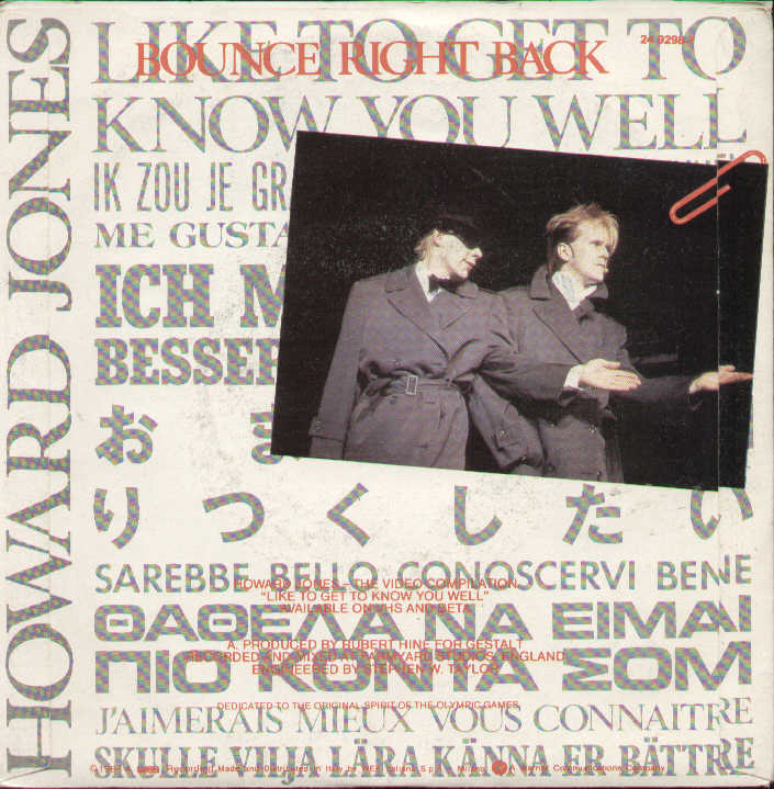 Howard Jones - Like To Get To Know You Well / Bounce Right Back