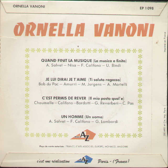 Ornella Vanoni - Quand Finit La Musique / Je Lui Dirai Je T'aime ...