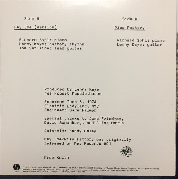 Patti Smith - Hey Joe Version / Piss Factory Rsd 2017