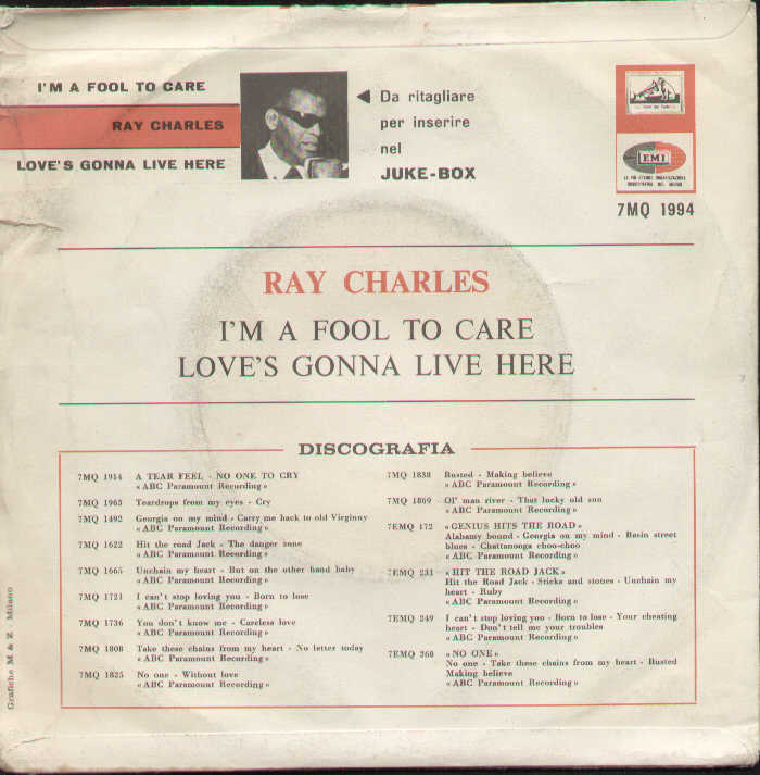 Ray Charles - Ray Charles Im A Fool To Care / Love's Gonna Live Here