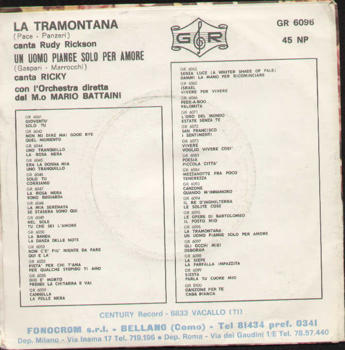 Rudy Rickson / Ricky - La Tramontana / Un Uomo Piange Solo Per Amore