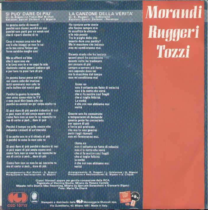 Morandi Ruggeri Tozzi - Si Può Dare Di Più / Le Canzone Della Verità