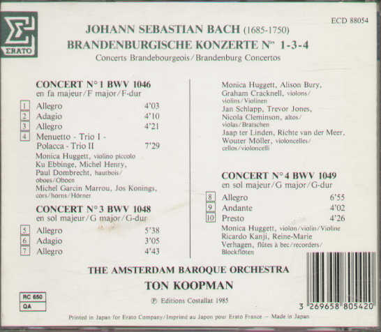 Bach Ton Koopman - Brandebourg Cocertos No.1-3-4