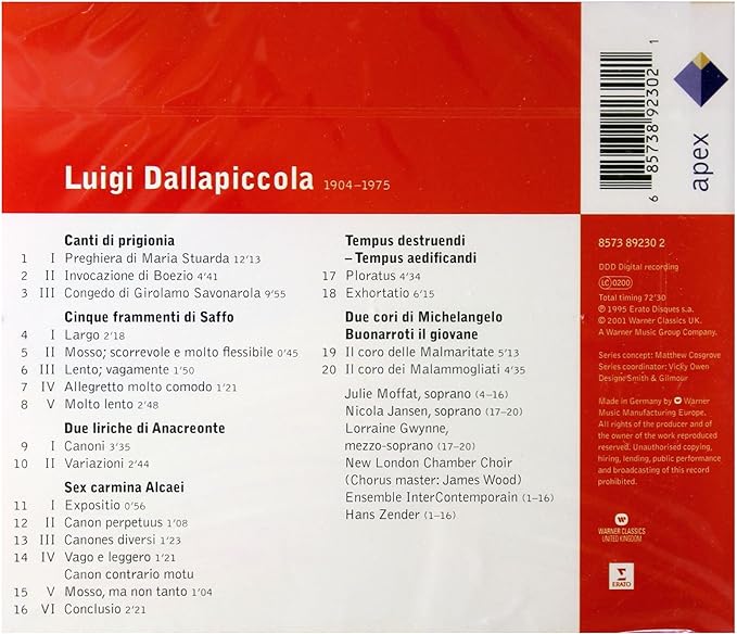 Dallapiccola - Canti Di Prigionia Cinque Frammenti Di saffo