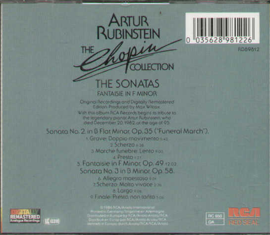 Chopin Artur Rubinstein - The Sonatas & Fantasie In F Minor