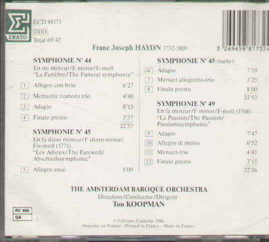 Josef Haydn The Amsterdam Baroque Orchestra Ton Koopman - Symphonies N.44-45-49.