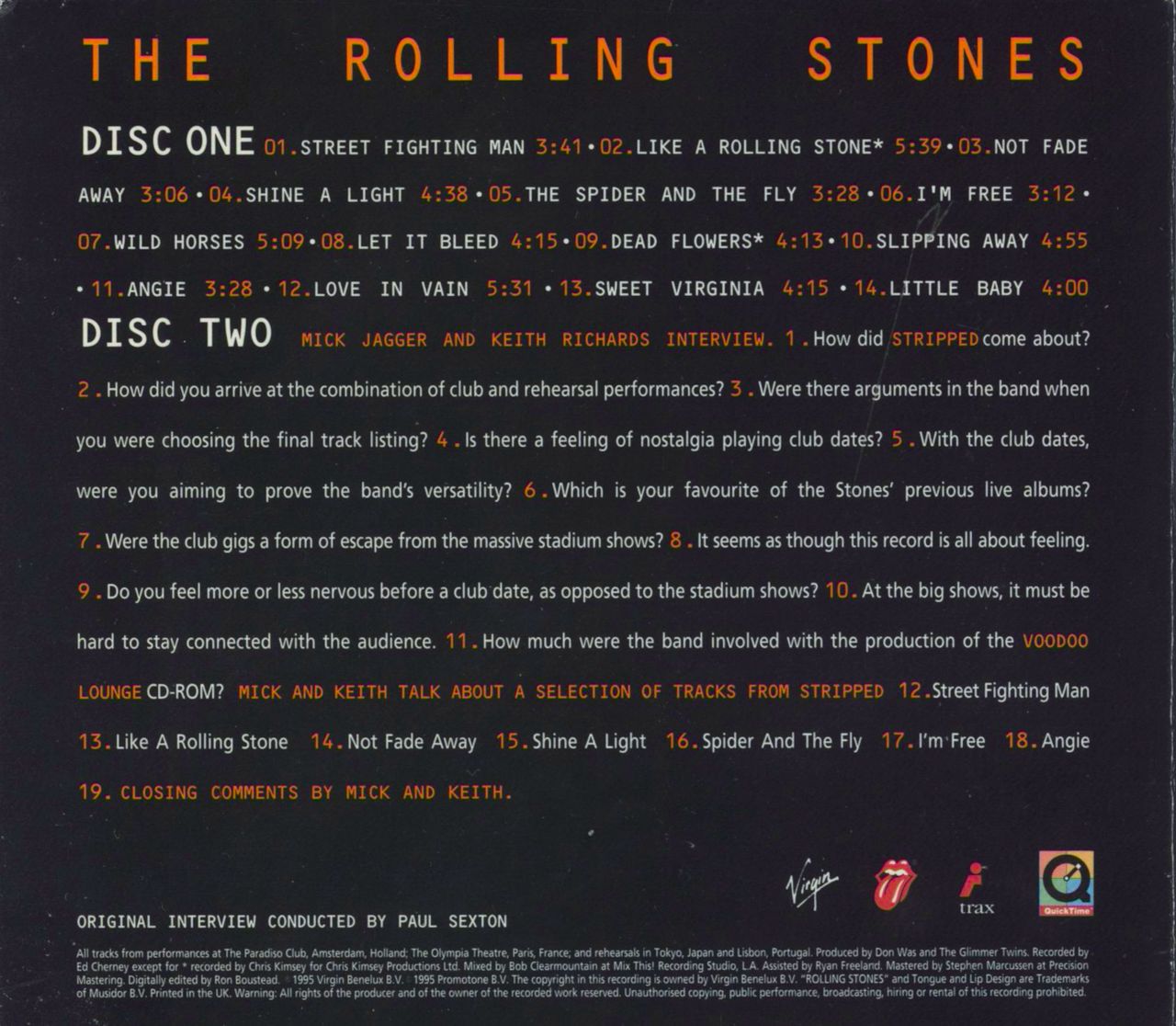 Double cd promotional pack. Contains stripped cd cdv2801 and disc two interview with Mick Jagger and Keith Richards.Comes in a double digipak fold out cover.