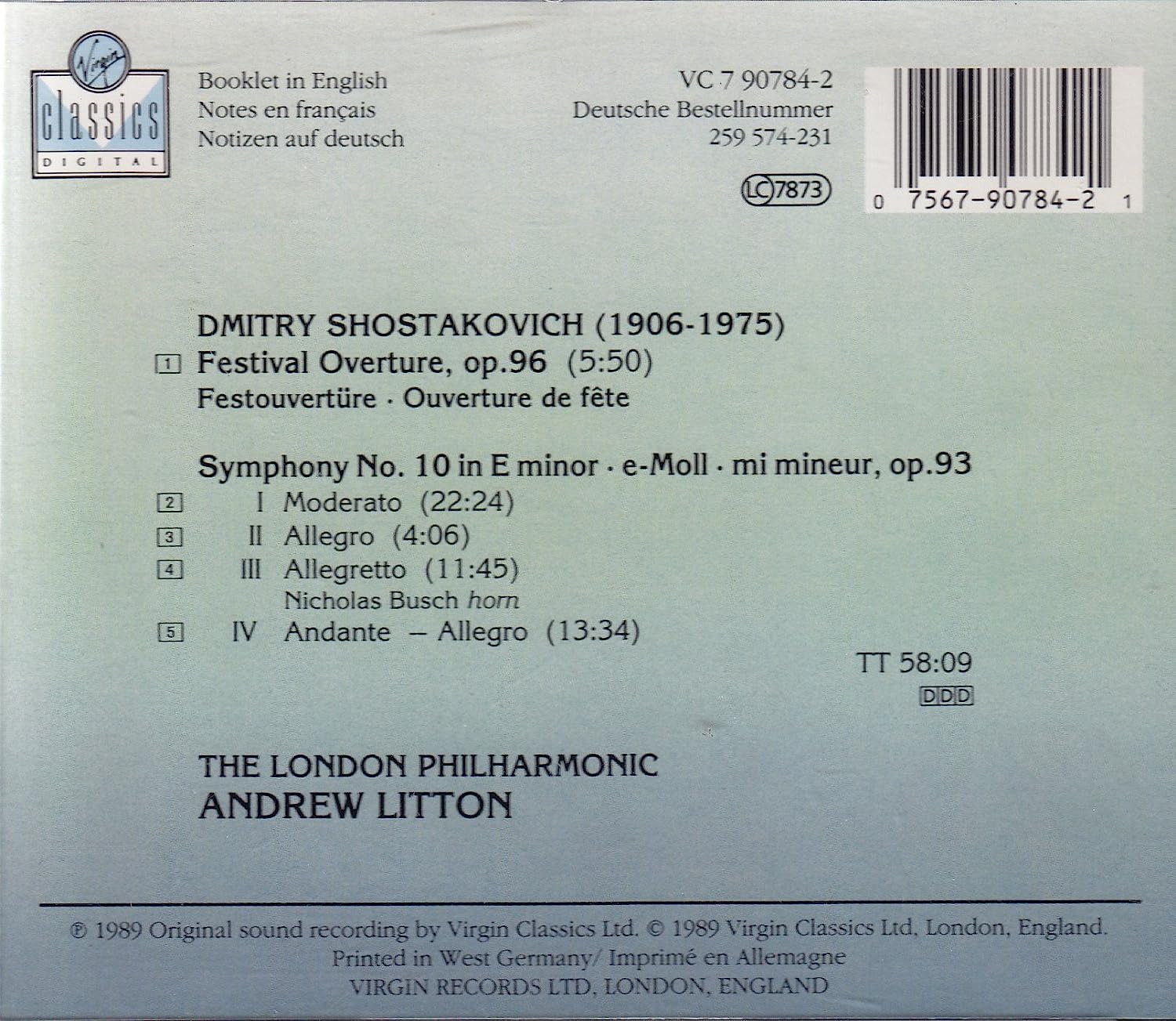 Shostakovich London Philharmonic Orchestra Andrew Litton - Symphony N.10 Festival Overture