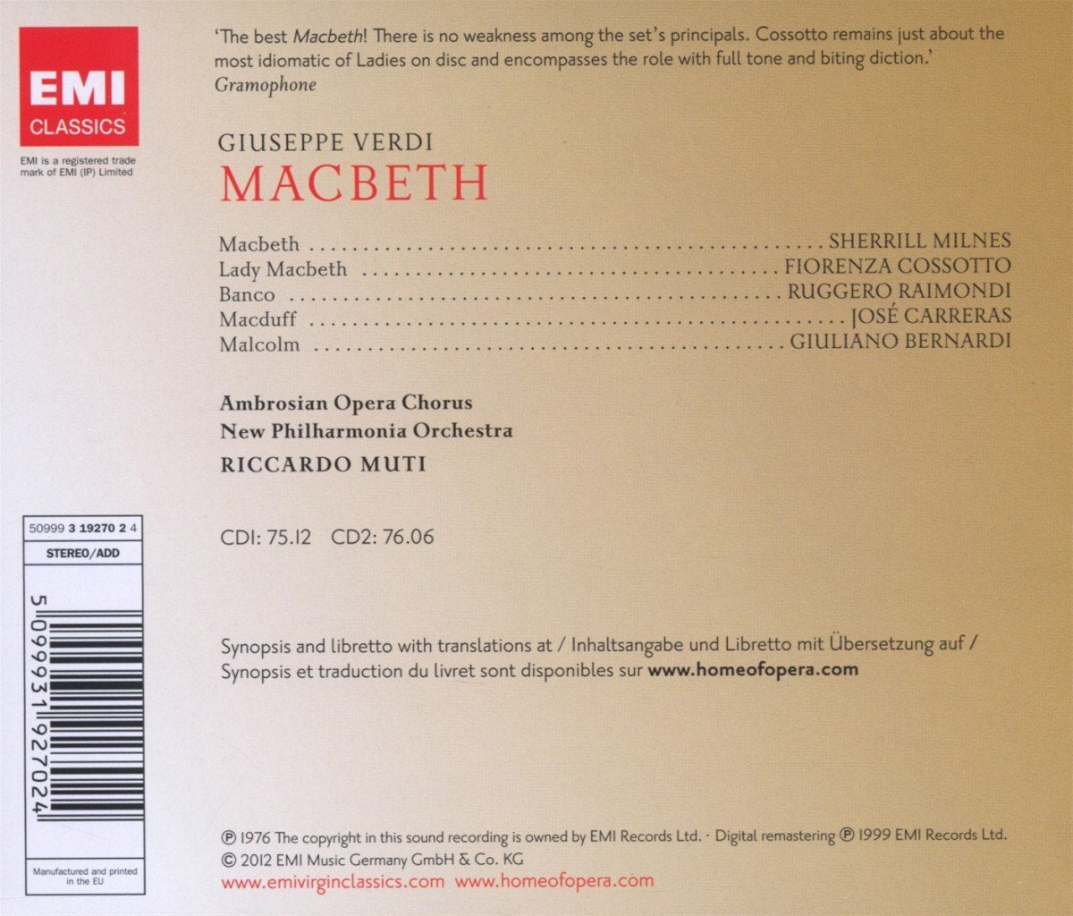 Verdi Sherrill Milnes Fiorenza Cossotto José Carreras... - Macbeth
